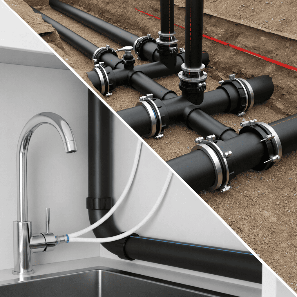 L’utilisation du PEHD pour l’eau potable est désormais la norme mondiale. Son principal avantage est son inertie physiologique : il ne libère aucune substance toxique et ne modifie pas le goût de l’eau. Contrairement aux tuyaux métalliques, il est totalement insensible à la corrosion électrolytique et ne s’entartre pas, grâce à sa paroi interne extrêmement lisse. Sa flexibilité permet également de limiter le nombre de raccords (livraison en couronnes), réduisant ainsi drastiquement les risques de fuites sur le long terme.